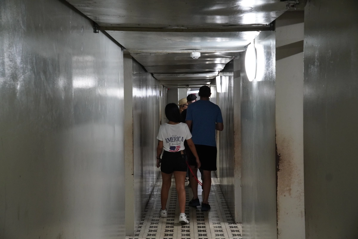 Area 2 (pictured below) is located at a depth of 2.5 m, with concrete walls 1.6 m thick, capable of withstanding the impact of bombs weighing up to 2,000 kg. In emergencies, the President could move down here via a staircase directly connected from the second-floor office. This area is currently not open to visitors.